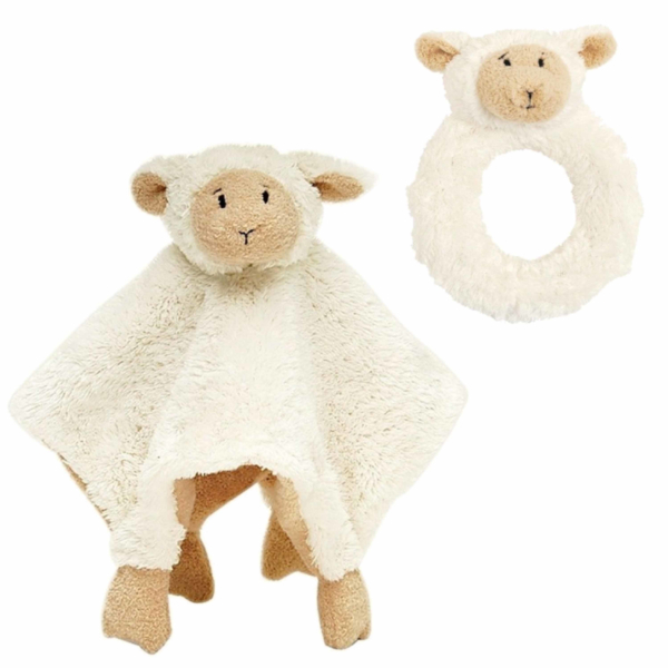 Baby cadeau setje rammelaar en tuttel doekje van Lammy het lammetje