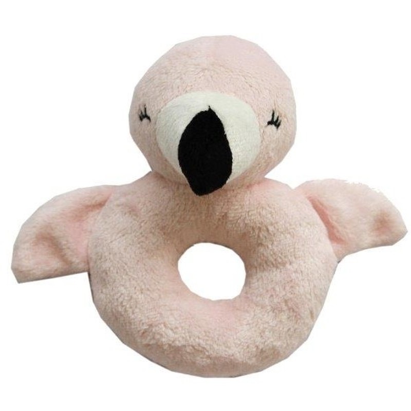 Nature Planet Dieren baby rammelaar – flamingo – pluche – 10 x 15 cm – speelgoed